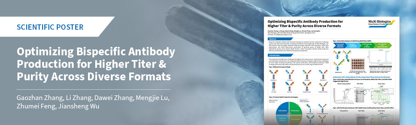 Bispecific antibodies (BsAbs) are a rapidly evolving and promising category of biotherapeutics. Unlike monoclonal antibodies, the production of bsAbs presents significant challenges in terms of quantity, quality, and stability, which could potentially limit their wider adoption in clinical applications. At WuXi Biologics, our Protein Sciences (PS) Department has developed integrated strategies to overcome these challenges in bsAb production.