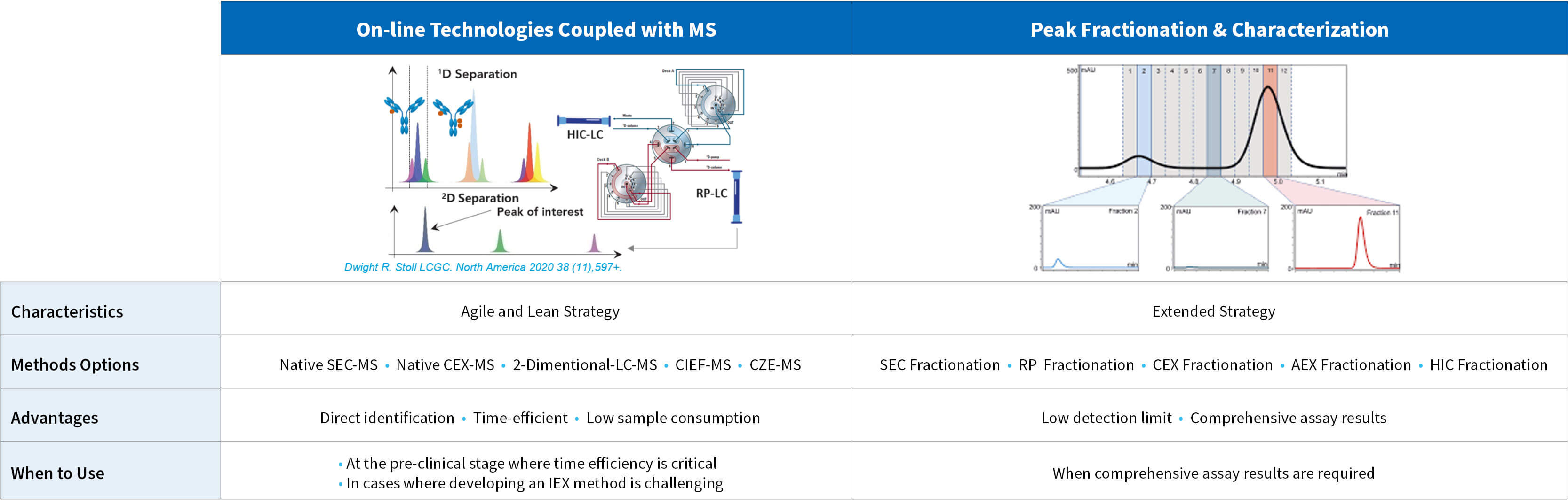 We also offer an extended strategy that uses semi-preparative column fraction collection and in-depth characterization. This approach empowers you to understand variants with low detection limits and obtain comprehensive assay results for a more detailed analysis.