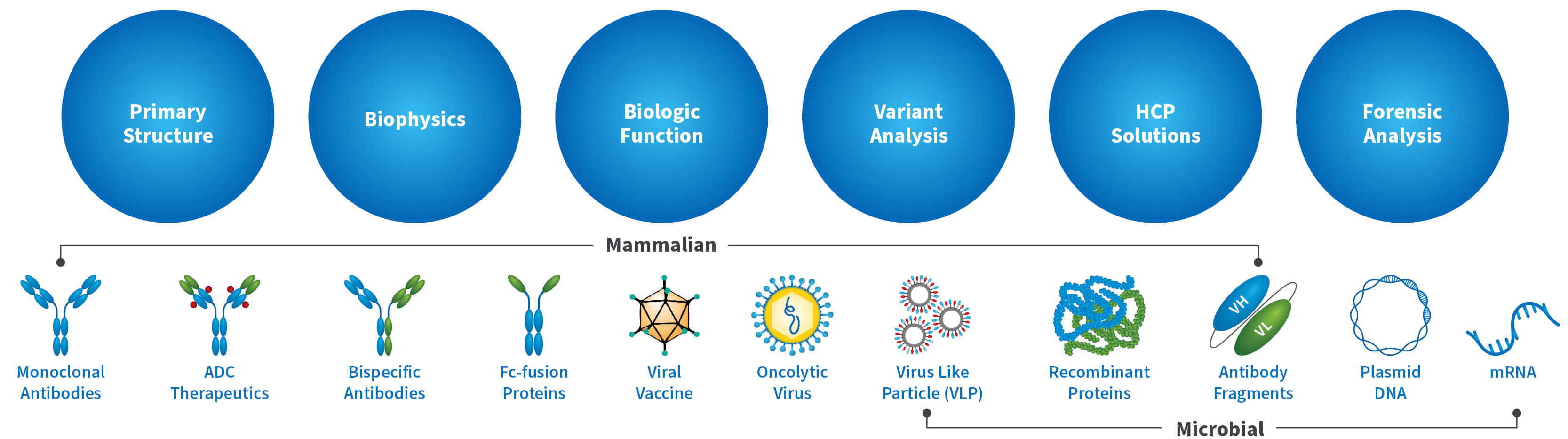 In the rapidly evolving landscape of biologics, understanding the intricate details of your product is crucial for ensuring quality control (QC) and meeting regulatory requirements. Our product characterization service employs advanced technologies to provide a deep understanding of your product and process, allowing you to strategically plan your next steps. This integrated solution offers a thorough assessment of every aspect of your product, from primary structure to biological effects and impurity profiles. Expertise on global regulatory requirements from early stages to late allows us to offer flexible, phase-appropriate strategies meticulously tailored to the unique needs of your product. Covering a wide range of capabilities for mammalian and microbial modalities, our service reliably delivers comprehensive insights.