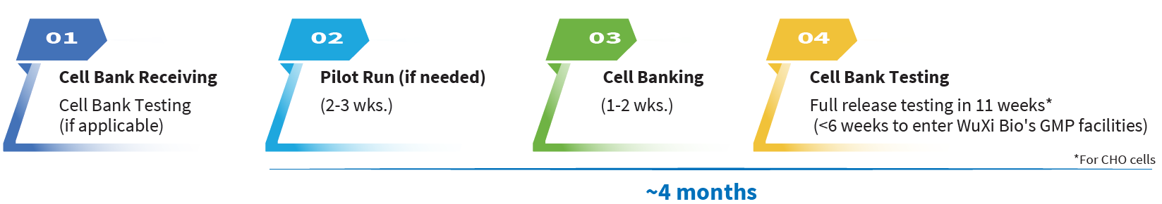 • ≤4 months for a complete cell banking timeline, including pre- and post- bank biosafety testing and QA release
