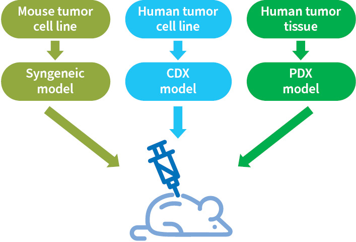 • Variety of in vivo efficacy evaluation models using an extensive array of tumor/mouse models
