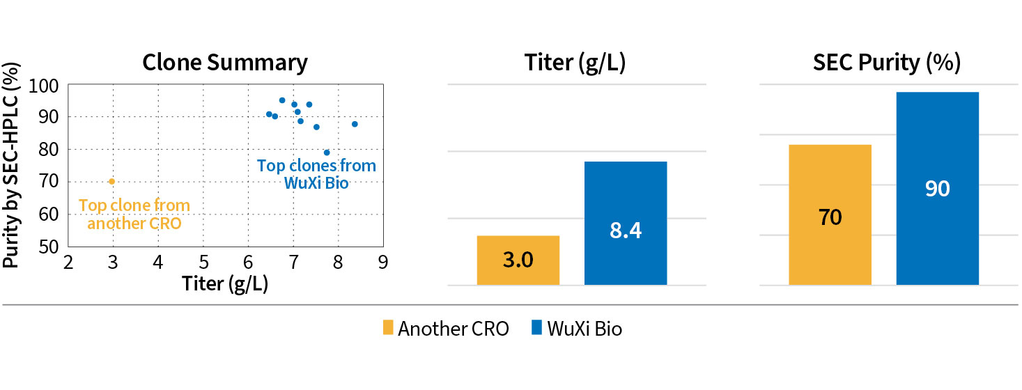 Client asked WuXi Biologics to assess the key attributes of two candidate molecules to determine the lead molecule for further product CMC development.