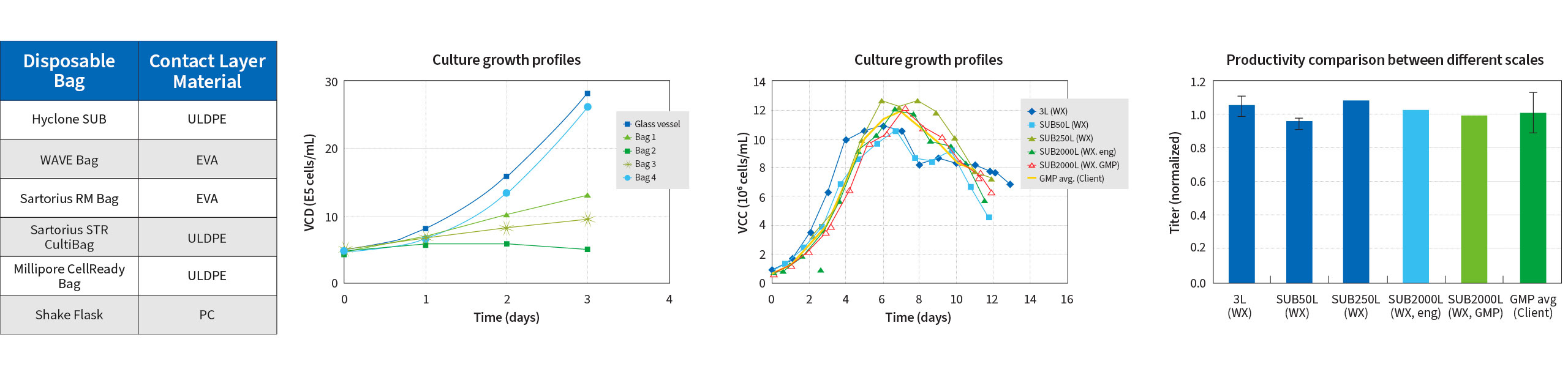 • Cell culture of NS0 cell line is difficult in single-use disposable systems according to historical records.