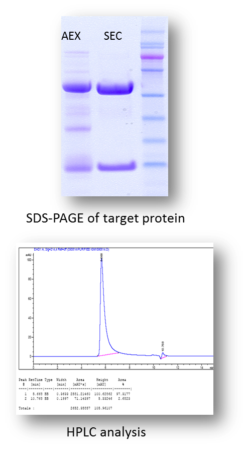 • The team added a high salt lysis buffer in the purification process and added a weak cation column for process purification optimization.
