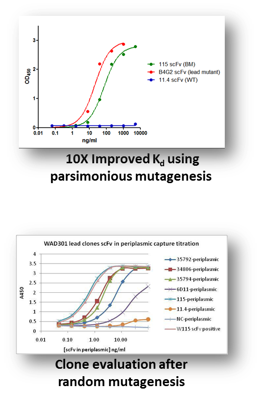 • Subsequent random mutagenesis resulted in generation of 5 clones with enhanced affinity characteristics
