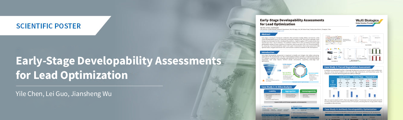 Promising antibody leads can still encounter setbacks when issues such as limited stability or suboptimal PK profiles emerge later in development. WuXi Biologics’ Micro Developability platform uses high-throughput assays to evaluate key developability attributes and flag downstream risks early, helping teams make data-driven lead optimization decisions with less material.