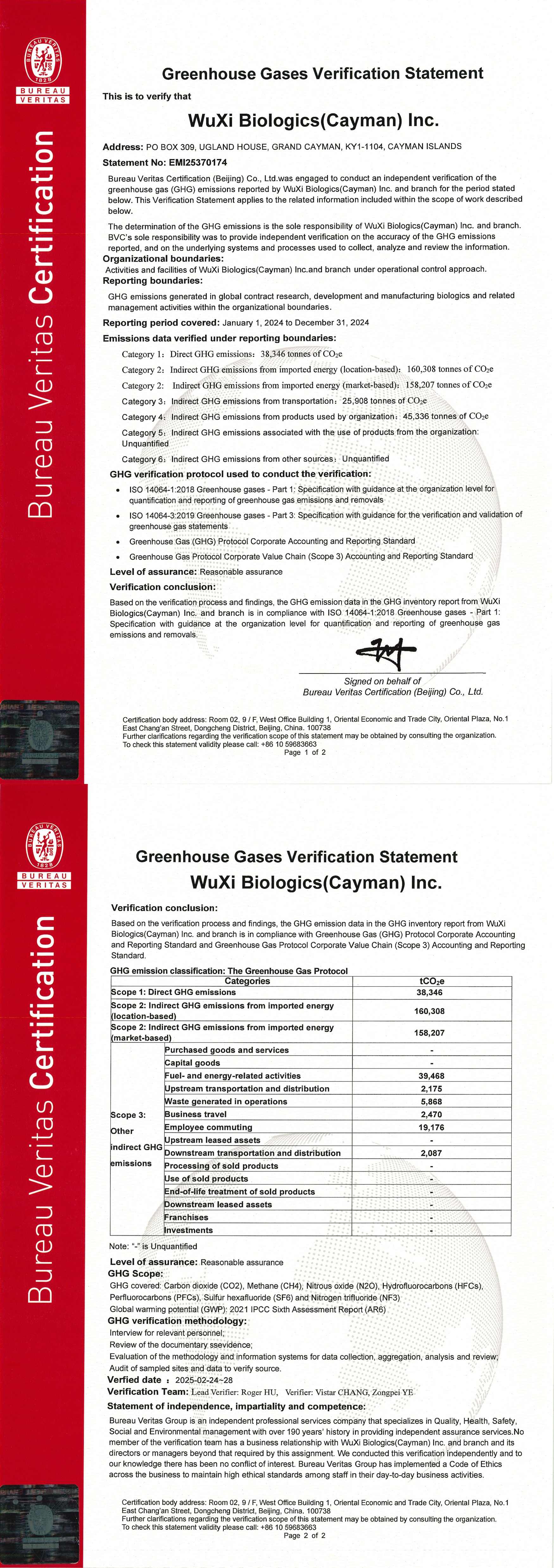 WuXi Biologics stands firmly committed to decreasing our energy use and reducing emissions. In addition, we shoulder the responsibility to minimize our carbon footprint and build business resilience against climate change.