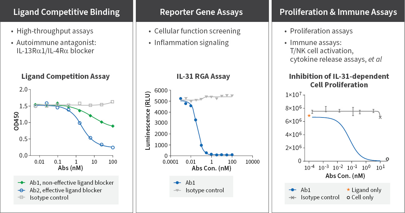 Industry-leading autoimmune and inflammation bioassays to support antibody characterization, functional screening, and mechanism of action (MOA) studies.