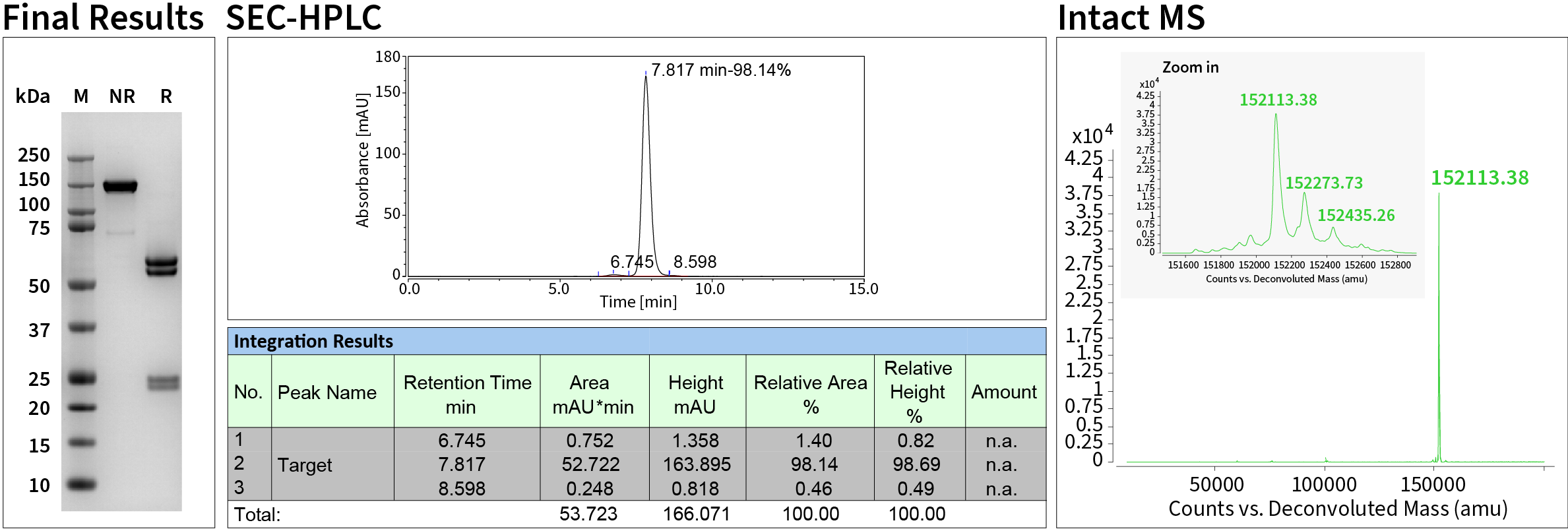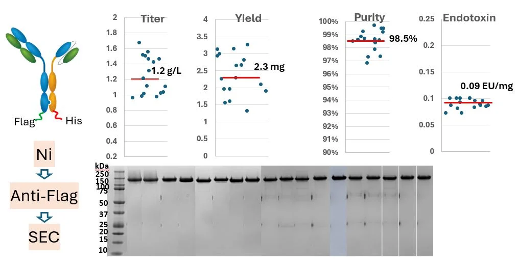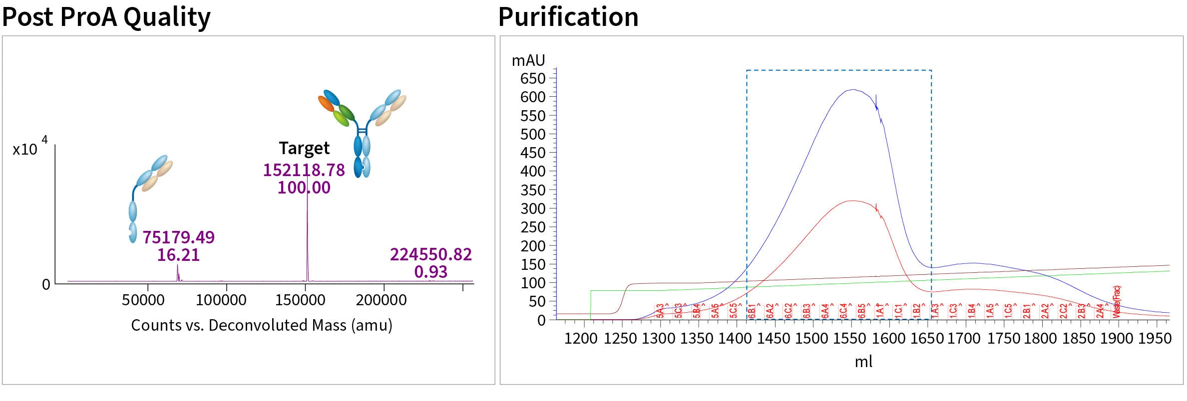 • LC-MS-assisted purification for >98% heterodimer and <0.1 EU/mg endotoxin