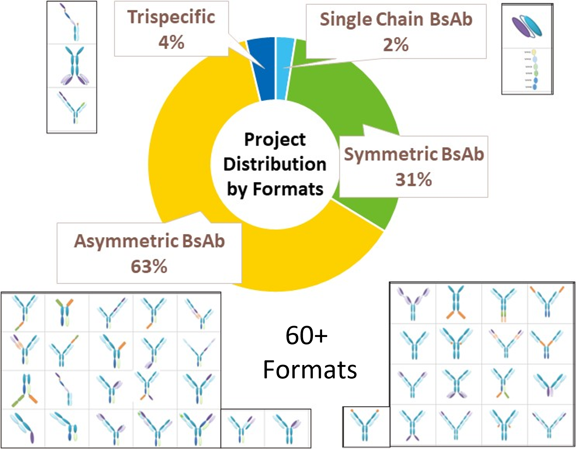 • Expertise in 60+ formats including CrossMab, scFv-Fab, bispecific VHH, Fc fusions & more
