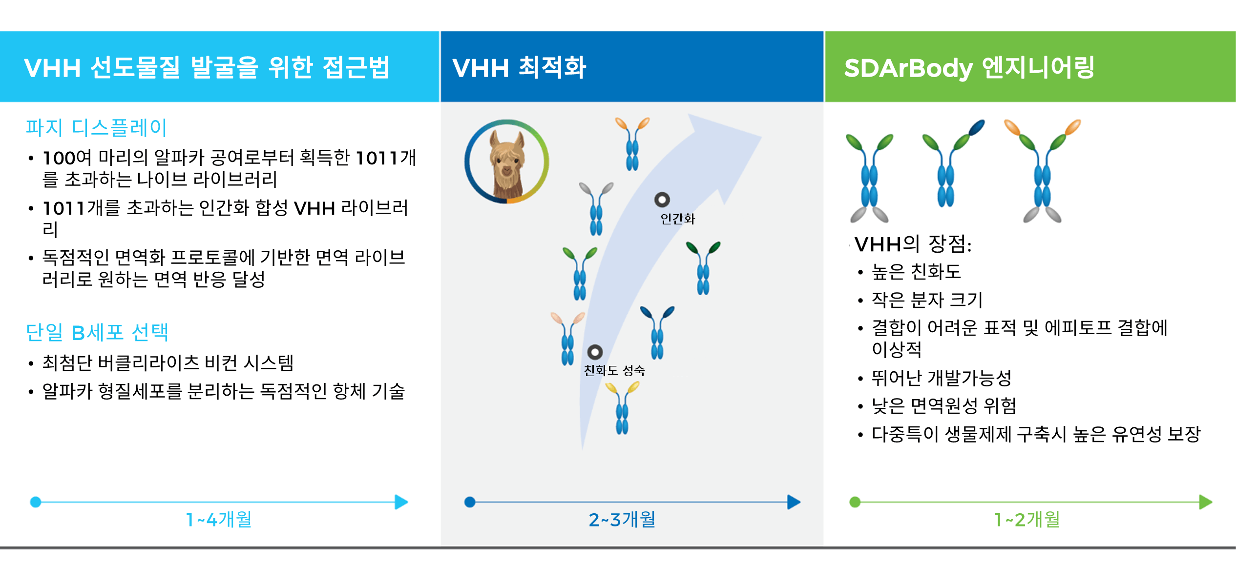 • 높은 친화도, 낮은 면역원성 위험, 뛰어난 개발가능성을 갖춘 다중항체 제작