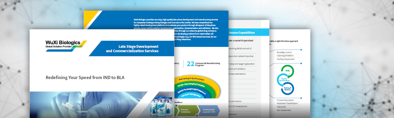 WuXi Biologics provides one-stop, high-quality late-phase development and manufacturing services for companies looking to bring biologics and vaccines to the market. Whether you are developing products from mammalian cell culture, microbial fermentation or via in vitro methodologies (e.g., for RNA-based vaccines), let our experienced teams help you meet your critical BLA filing milestones.