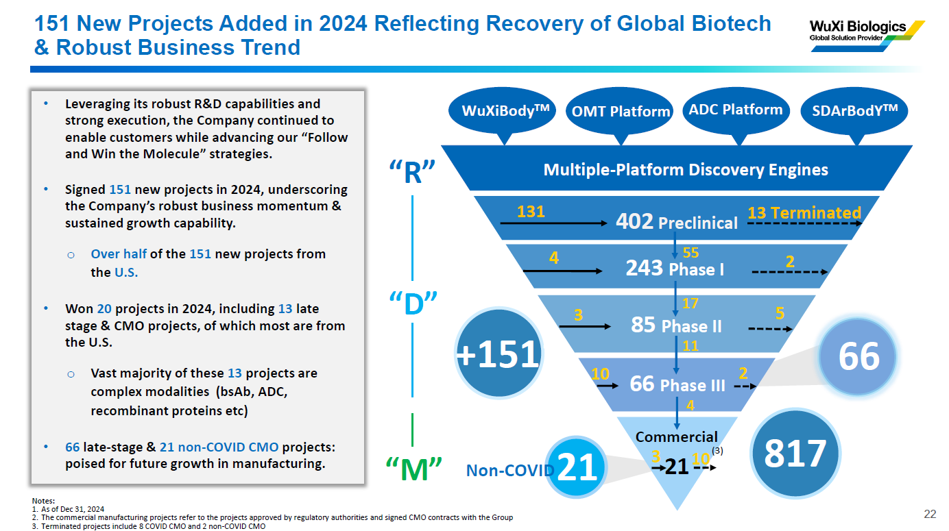 • A total of 817 integrated projects, including 66 Phase III clinical projects and 21 non-COVID commercial manufacturing projects.