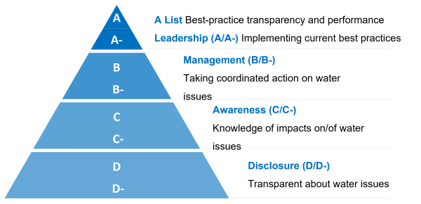According to CDP’s scoring methodology, companies are evaluated on their awareness of environmental issues, management methods and advancements in environmental stewardship. Assessments are conducted across four levels that represent the steps a company moves through on its action journey: Disclosure (D-/D score), Awareness (C-/C score), Management (B-/B score), Leadership (A/A- score).