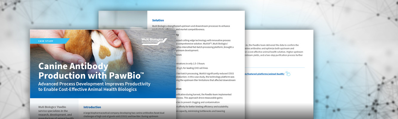 Our PawBio case study showcases our approach to overcoming low titer and yield in a canine antibody project. By optimizing both upstream and downstream processes, we significantly improved productivity, in turn reducing costs and accelerating project progress.