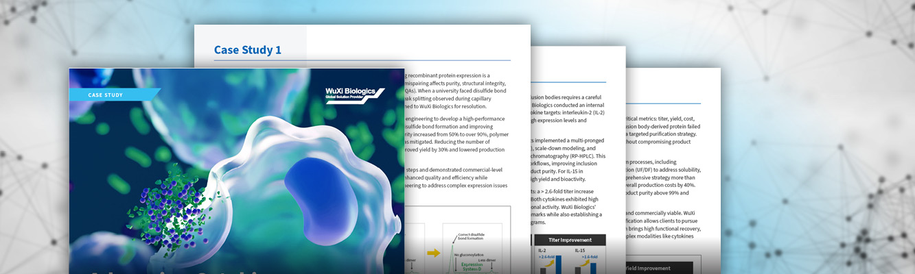 Discover how tailored solutions across the biologic development spectrum—from strain engineering to purification refinement—drive improvements in yield, purity, and overall process efficiency for cytokines. WuXi Biologics designed each strategy to maximize scalability and quality, helping clients accelerate both clinical progress and commercial success.