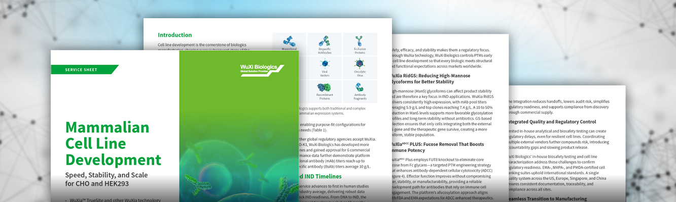 Cell lines are the bedrock of biologics development and manufacturing. Optimizing stability, maximizing yield, and supporting a wide range of modalities gives you a head start in a dynamic, competitive marketplace. WuXi Biologics minimizes setbacks and sets up your mammalian-expressed biologic for end-to-end success and rapid release.